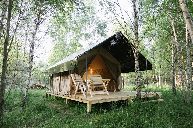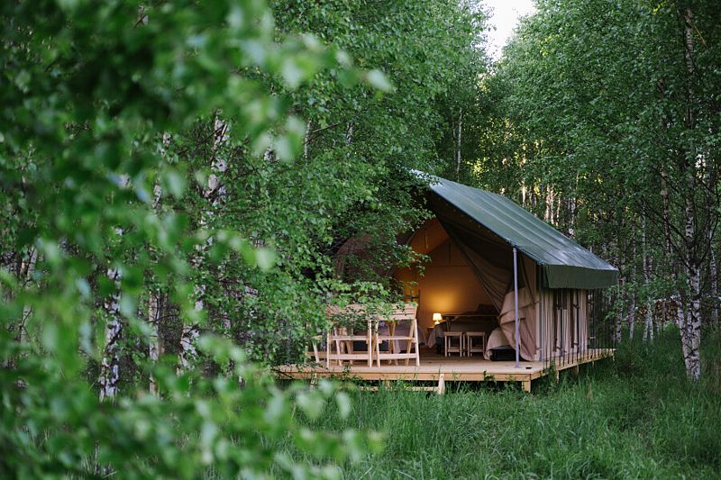 Глэмпинг «Луно» предлагает отдых в комфортных сафари тентах среди живописного леса.