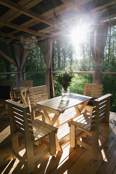 Летом на веранде можно заказать самые вкусные завтраки и обеды, разделив их с близкими под пение птиц и шепот леса.