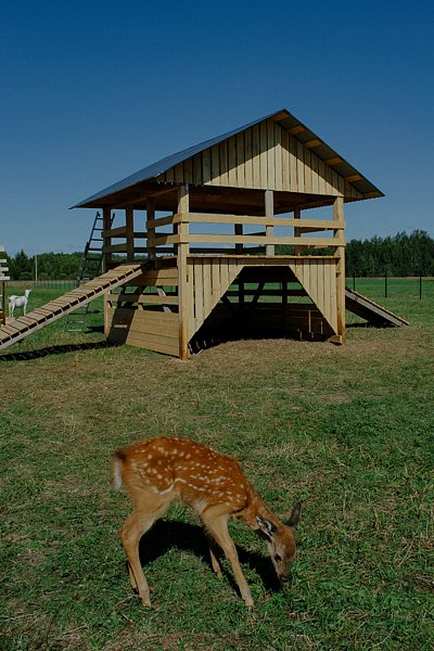 На территории есть небольшая эко-ферма с очаровательным зверушками, с которыми можно пообщаться; тёплый чан и настоящая русская баня.