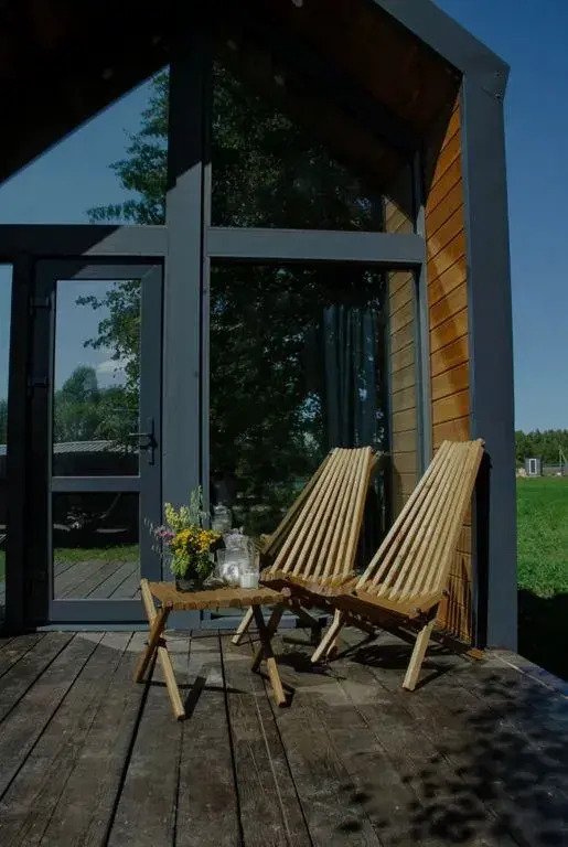 Дом рассчитан на 2 гостей + кресло-диван на 1 ребёнка.
