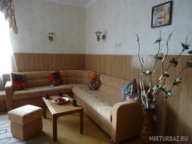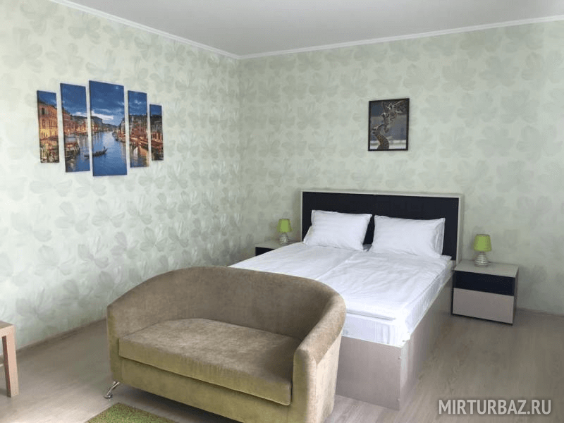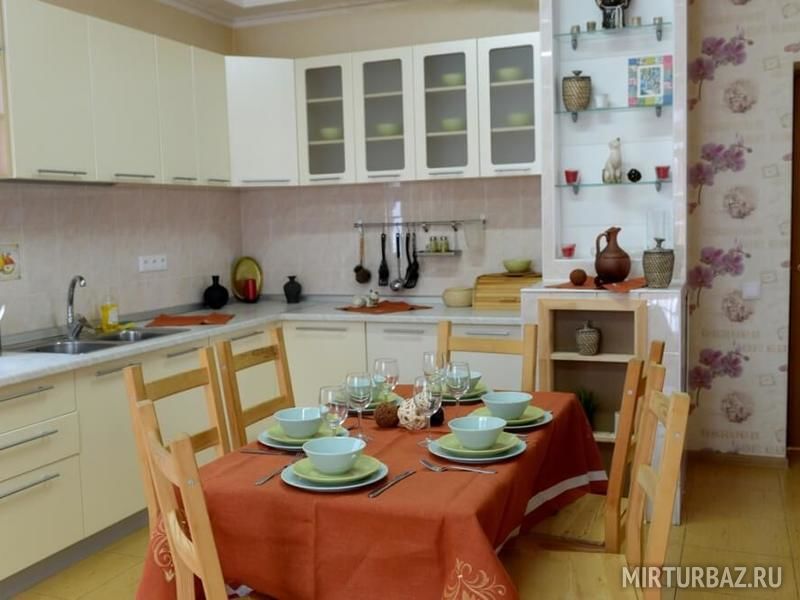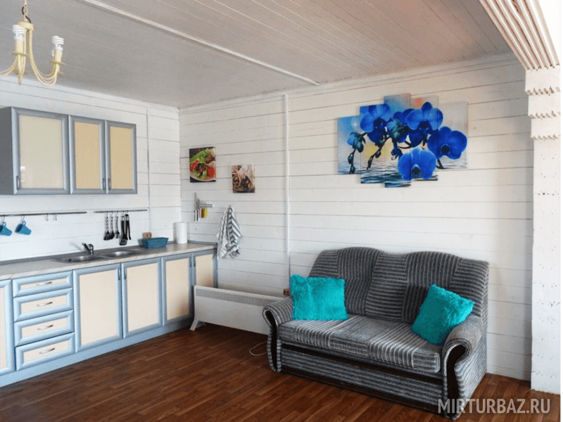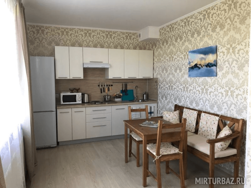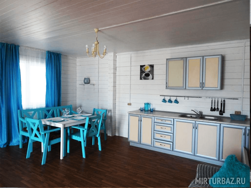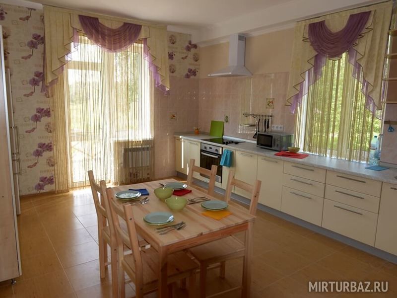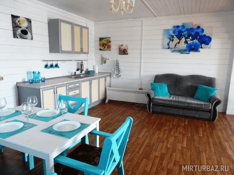 На Медовой Горке 8 апартаментов. Дизайнеры оформили разным цветом и мебелью каждый уютный уголок. Подобрана мебель, отделка, текстиль и посуда. Просторные кухня, гостиная и санузел, полностью оборудованные мелью и техникой. Здесь есть все, что может понадобиться для комфортного отдыха: двуспальная кровать, диван, платяной шкаф, LCD телевизор, на кухне есть необходимая бытовая техника: чайник, холодильник, электроплита, микроволновая печь, набор посуды, стол и стулья, ванная комната с душевой кабиной и санузлом, комплект полотенец и комплект постельного белья. Рядом с домом — парковка, площадка для барбекю с мангалом, садовая мебель, батут и качели для комфортного отдыха.