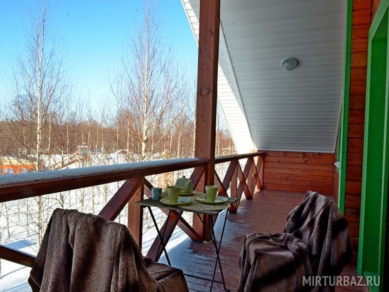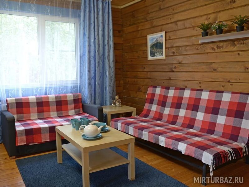 В коттедже есть все, что может понадобиться для комфортного отдыха: две односпальные и одна двуспальная кровать, платяной шкаф, в гостиной два дивана, кофейный столик, LCD телевизор, на кухне есть вся необходимая бытовая техника: электрочайник, холодильник, электроплита, микроволновая печь, набор необхомой посуды, стол и стулья, ванная комната с душевой кабиной и санузлом, комплект полотенец и комплект постельного белья на каждого гостя. Рядом с коттеджем — индивидуальная площадка для барбекю с мангалом, дровницей, уличной мебелью и садовой качелью для комфортного времяпрепровождения. А у некоторых домиков предусмотрена парковка.