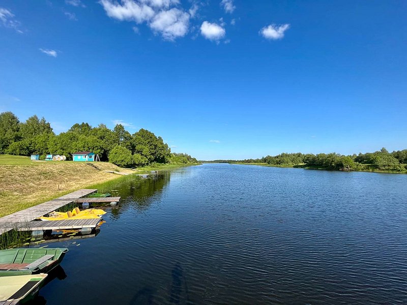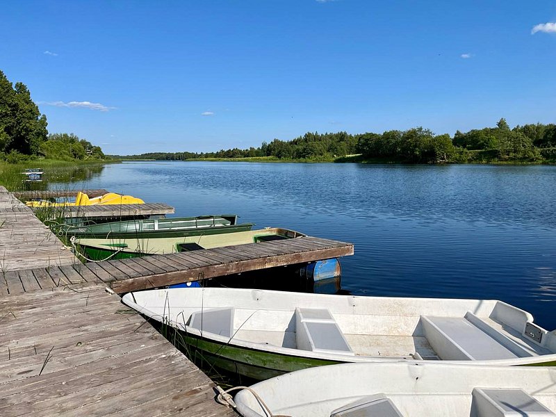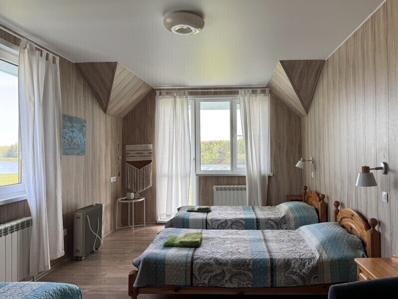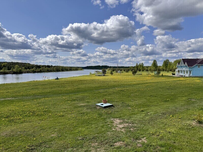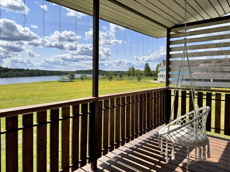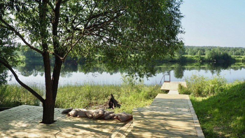 У нас большая территория около 17 ГА без заборов, почувствуете настоящий простор после города. Есть домики на самом берегу, а есть в березовой роще в ста метрах от воды.