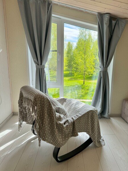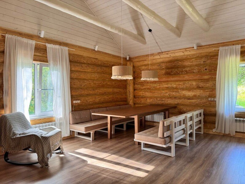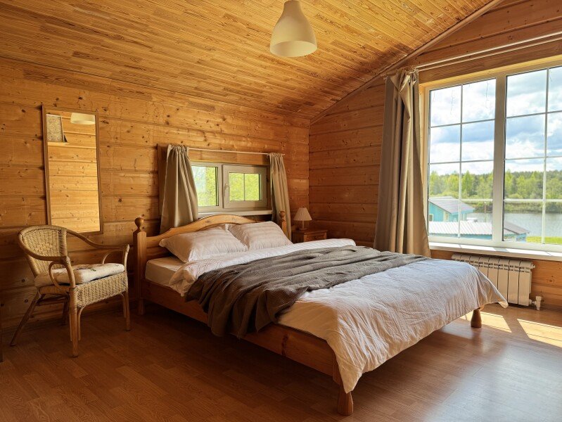 В доме могут разместиться до семи человек. Заезд в 17:00, выезд до 14:00. Для домашних животных стоимость 2000–4000 ₽.