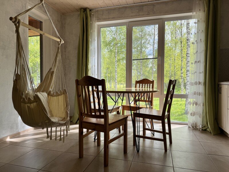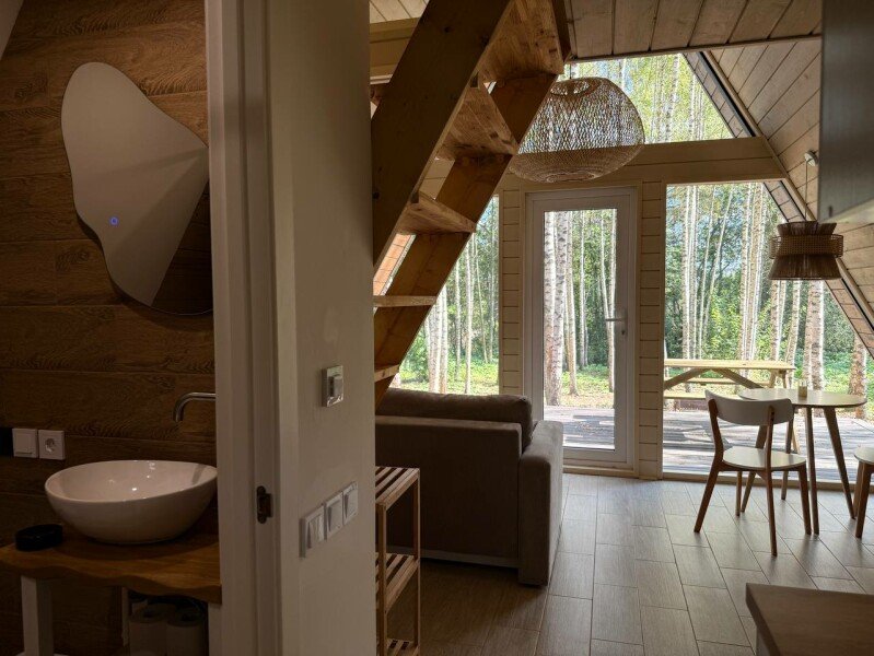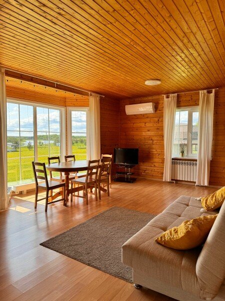 В тени волшебной березовой роще стоит домик с большими окнами, а рядом протекает кристальная речка Медведица. За дверью дома вы погружаетесь в атмосферу дикой природы.