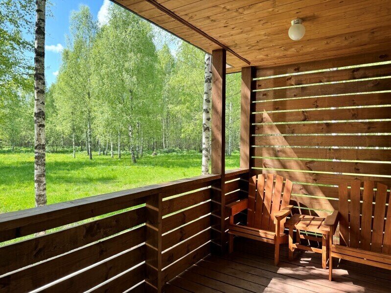 В тени волшебной березовой роще стоит домик с большими окнами и верандой, а рядом протекает кристальная речка Медведица. За дверью дома вы погружаетесь в атмосферу дикой природы.
