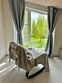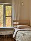 Дом 120 м2 на 6 человек. Мангальная зона у крыльца. Гостиная с полностью оборудованной кухней, ТВ и Wi-Fi и раскладным диваном (ширина 140). Просторная ванная комната с душем, туалетом и раковиной. В одной спальне двуспальная кровать 160см, а в другой одна двуспальная 160 и одна односпальная 90см.