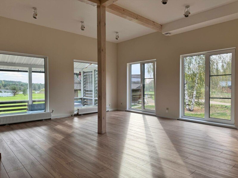 На первом этаже зал 70 м2 с панорамными окнами, зона отдыха и большая веранда.