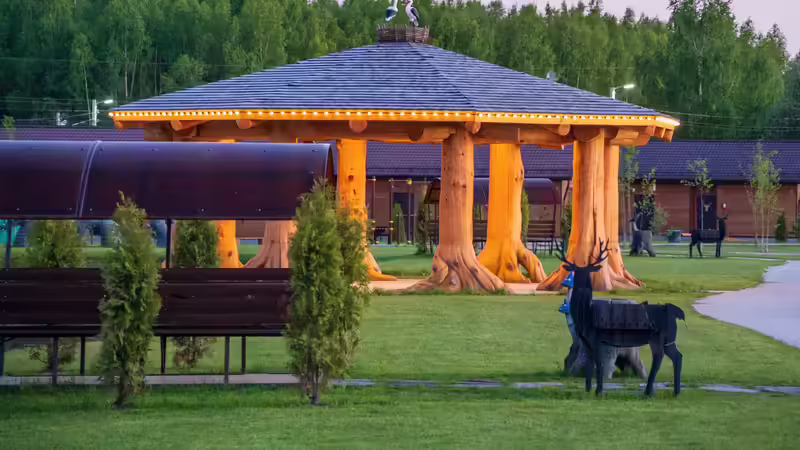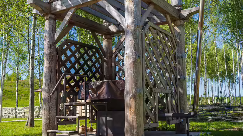 Для уединенного комфортного отдыха к услугам гостей 3 банных комплекса из карельской сосны Кело с целебными травяными чанами. Кроме того, на территории оборудованы мангальные зоны с беседками у воды, где можно насладиться приготовлением аппетитных блюд на открытом воздухе.