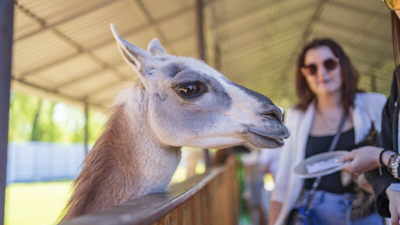 Более того, гости комплекса могут непосредственно взаимодействовать с животными, угощая их специально подготовленными лакомствами. Для этого можно взять с собой морковь, капусту, яблоки, груши, подсушенный хлеб, а для павлинов — пекинскую капусту. Мы с любовью относимся ко всем нашим питомцам, поэтому просим наших гостей тщательно помыть и порезать угощения на небольшие кусочки. Также ведерко с кормом можно приобрести у администратора на ресепшн.