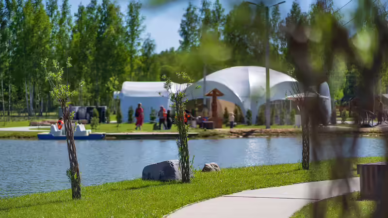 Для максимального комфорта отдыхающих «Место 7» также располагает просторным шатром, идеально подходящим для проведения мероприятий любого формата и оборудован всем необходимым оборудованием и даже включает в себя отдельные модули для кухни и сцены. А свежие блюда для мероприятий будут доставляться прямиком из фирменного ресторана комплекса.