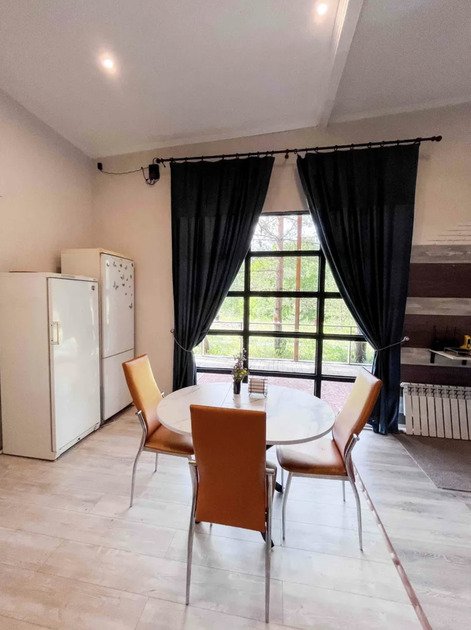 Дом оборудован всем необходимым для комфортного проживания. Кухонная и столовая зоны позволяют с легкостью готовить и принимать пищу на компанию до шести человек. Здесь есть все для удобства: современная техника и просторные рабочие поверхности.