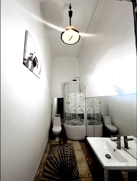 В доме два санузла: в первом установлены ванна, стиральная машина, раковина и электрический полотенцесушитель, а во втором — душевая кабина, раковина и электрический полотенцесушитель.