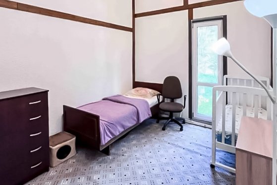 Для семей с детьми предусмотрены две отдельные детские комнаты: одна с односпальной кроватью и детской кроваткой, другая — с двухъярусными кроватями. Спальни для взрослых оснащены двуспальными кроватями, одна из них имеет рабочий стол с оргтехникой и выход на веранду, а в другой установлен Smart TV для досуга. Дом располагает двумя санузлами: один с ванной, стиральной машиной и полотенцесушителем, второй — с душевой кабиной.