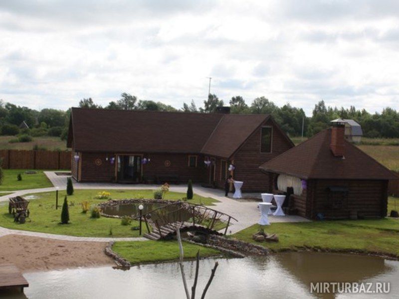 В 500 метрах от базы произрастает смешанный лес, где можно самостоятельно собирать ягоды и грибы. Непосредственно на территории базы есть озеро для купания и рыбалки, живой уголок с деревенскими домашними животными, коттедж с банкетным залом, русская баня, беседка для пикников. Строения базы выполнены с применением натурального дерева и стилизованы под деревенский стиль. Двор украшен декоративными предметами экстерьера, благодаря чему здесь можно организовывать праздничные и тематические фотосессии.