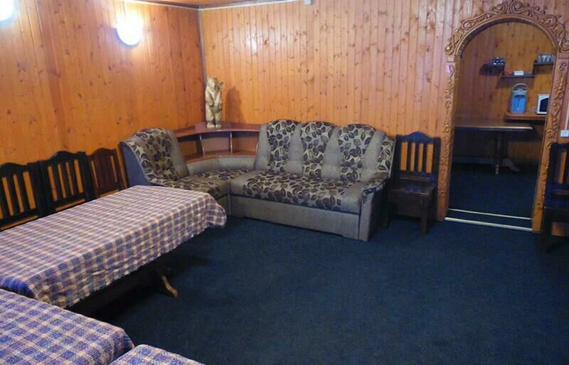 Банкетный зал вместимостью до 30 человек, камин, телевизор, музыкальный центр, караоке, кухня с электрической плитой, микроволновой печью, холодильником, душевая, туалет, 3 спальные комнаты, каждая с двуспальной кроватью и ТВ, выход на балкон.