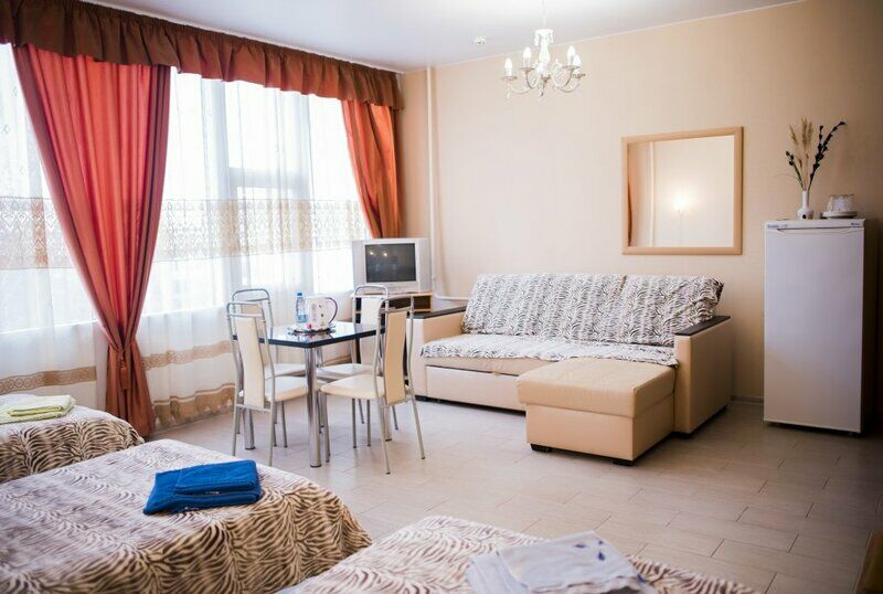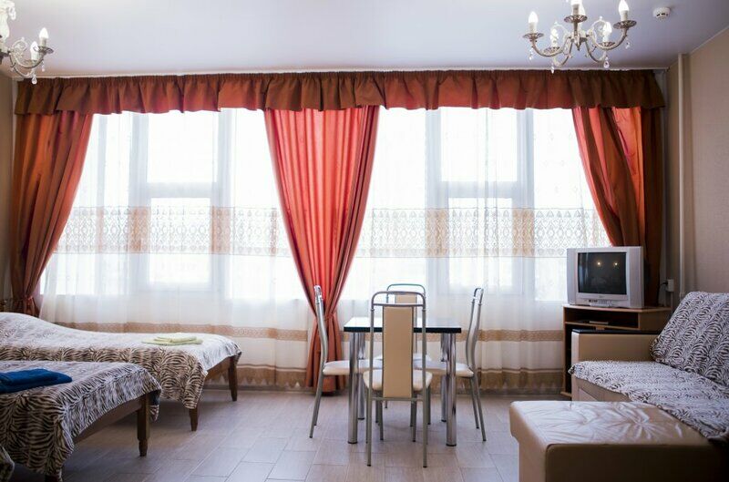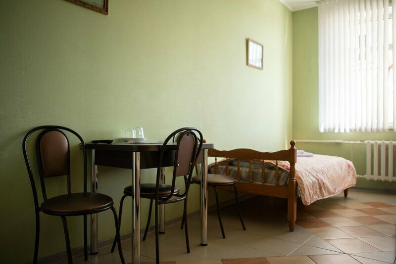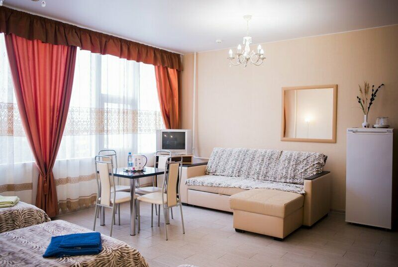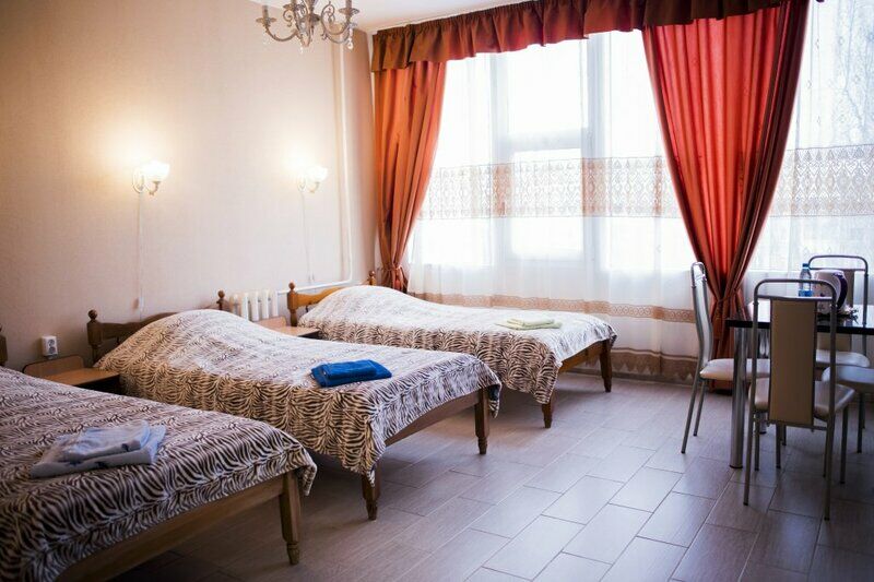 Шестиэтажный корпус отеля, оснащенный лифтом, возвышается в начале проспекта Корыткова. Жилой фонд включает в себя одноместные и двухместные номера разной категории комфорта. В каждом имеется собственный санузел, кондиционер, плазменный телевизор.