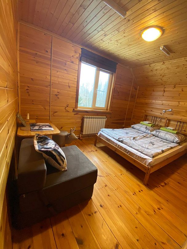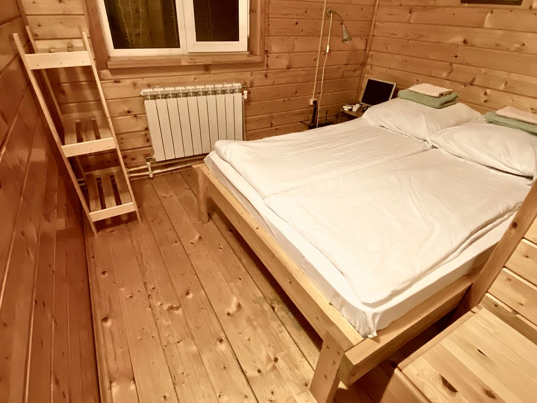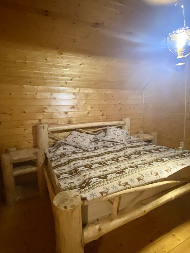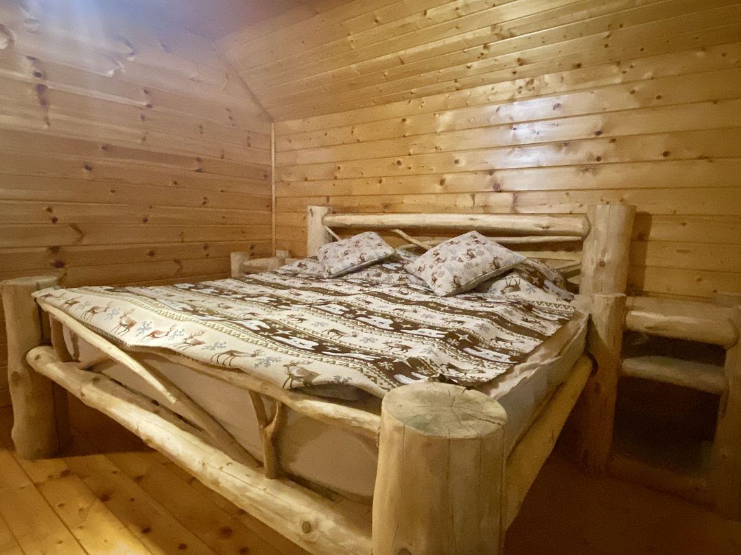 Размещение удобно для молодоженов, любой пары, пары с ребенком. Сказочный номер с царской кроватью из натурального массива дерева.