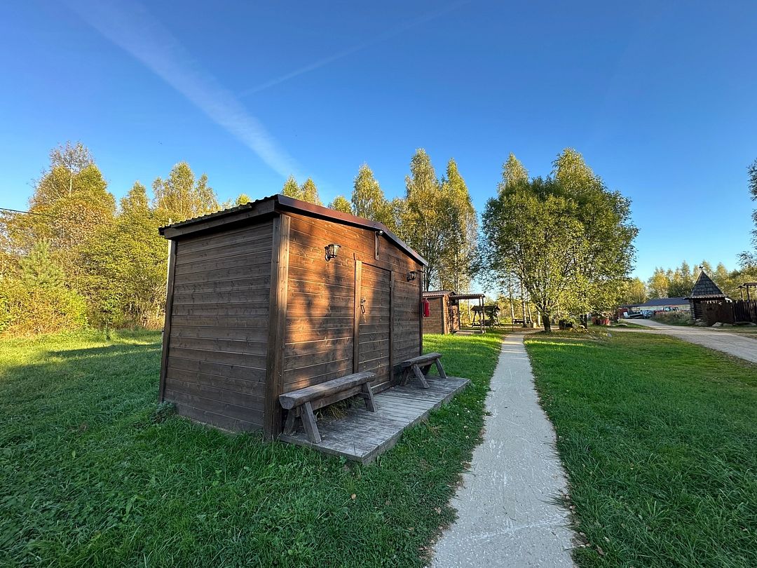 Общие туалеты и гостевой душ на территории.