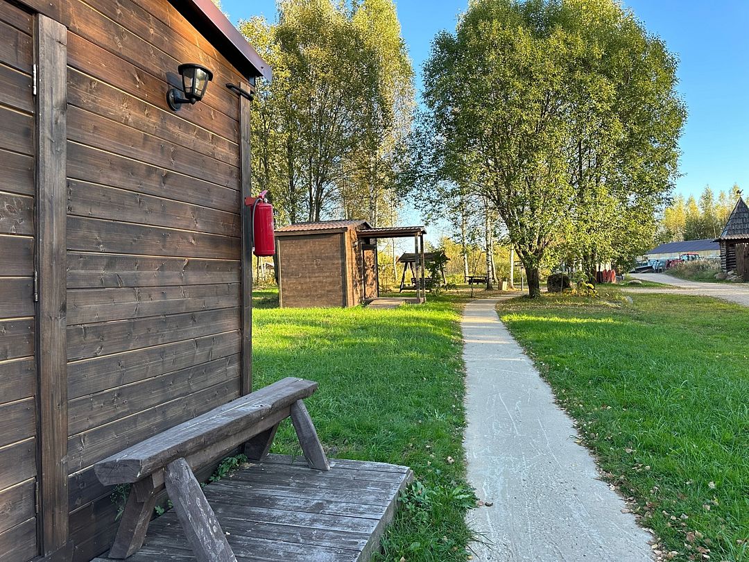 Для комфортного проживания гостей в основном доме оборудованы уютные номера. На первом этаже вас ждет просторная общая кухня со всей необходимой техникой и посудой, а на втором — санузлы и душевые. Рядом расположена уютная беседка, где можно отдохнуть после насыщенного дня.