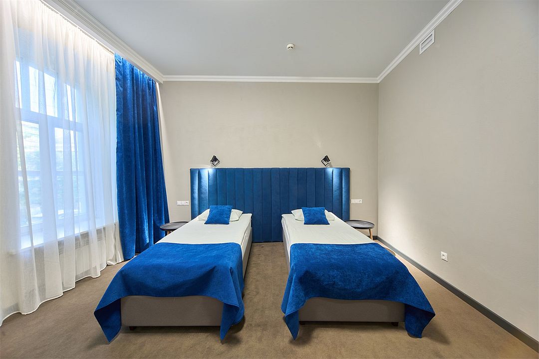 Двухместный номер с двумя отдельными кроватями. В номере: телевизор, холодильник, фен, санузел и душевая с мыльными принадлежностями. Номер оборудован кондиционером.Услуги и удобства