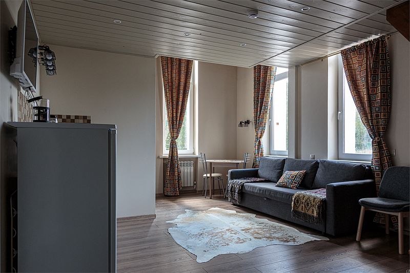 Номер 1 категории. 1 двуспальная кровать + диван (возможно размещение 2+2).