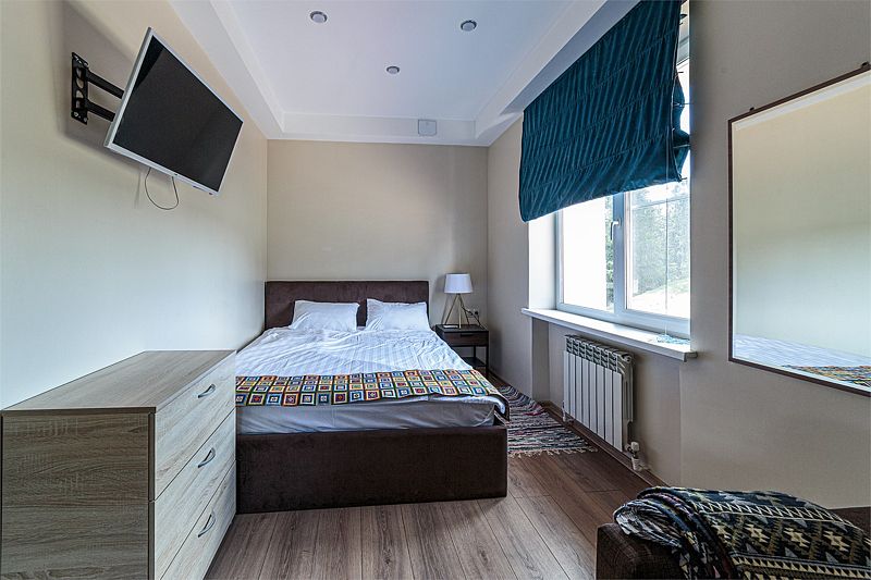 Номер 1 категории. Площадь спальни 12,0 м2 (второй свет). 1 двуспальная кровать + диван (возможно размещение 2+2).