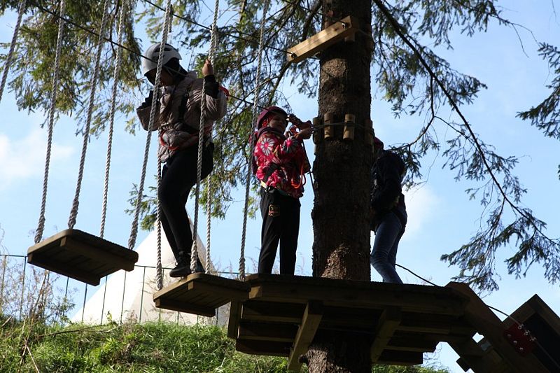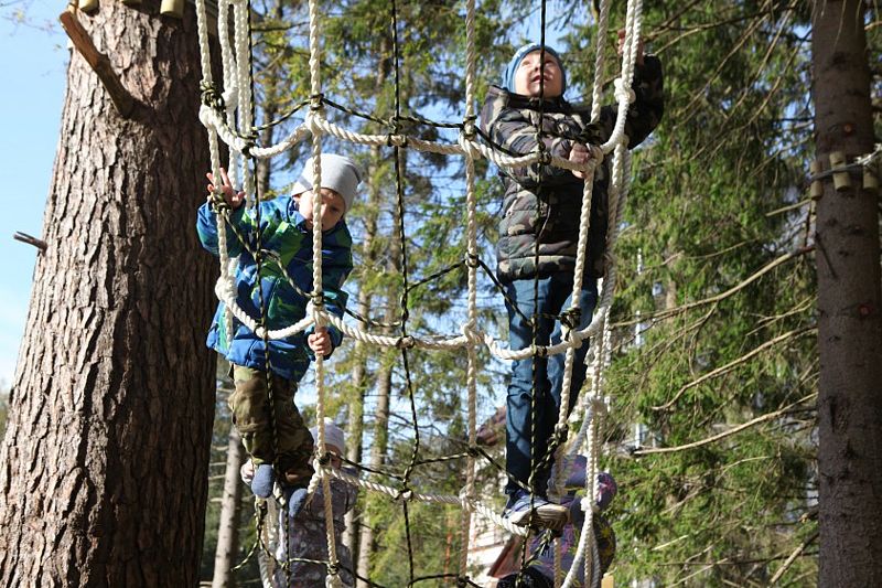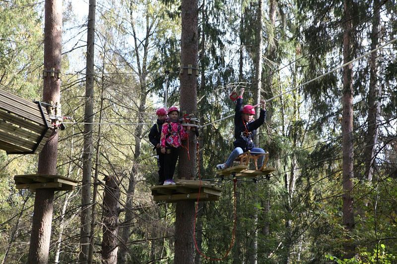 3 полосы препятствий разной сложности: детская, семейная и экстремальная, с двумя троллеями: 30 м и 55 м.