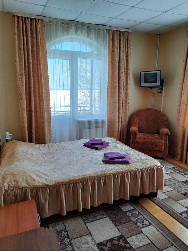 телевизор, Wi-Fi, холодильник, настольные лампы, санузел, банные полотенца, гигиенические средства, балкон, балкон с красивым видом, двуспальная кровать, односпальная кровать, шкаф для одежды, вешалки, журнальный столик, раковина, душ, стул, тумба, туалетные средства, туалет, вид на озероВ гостиничном номере