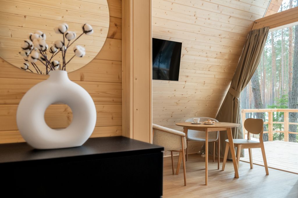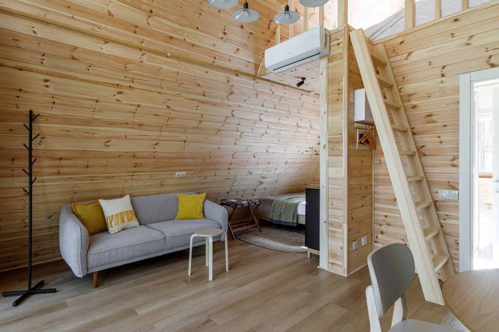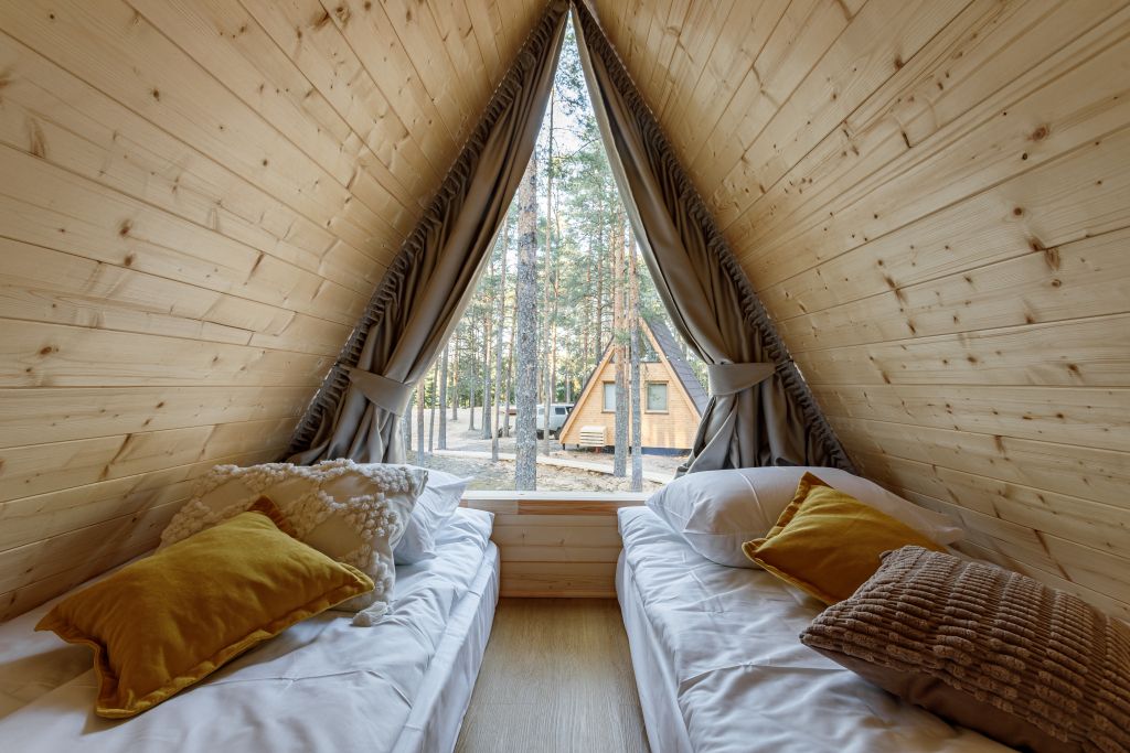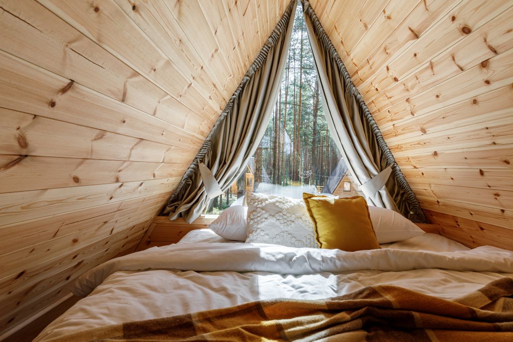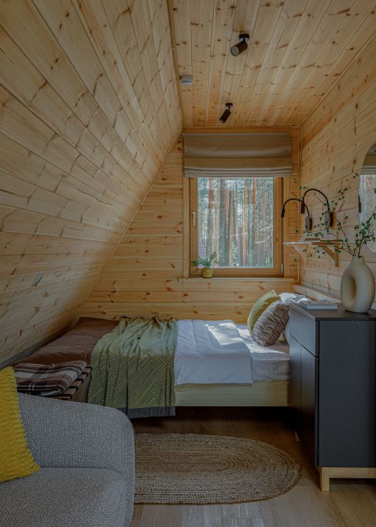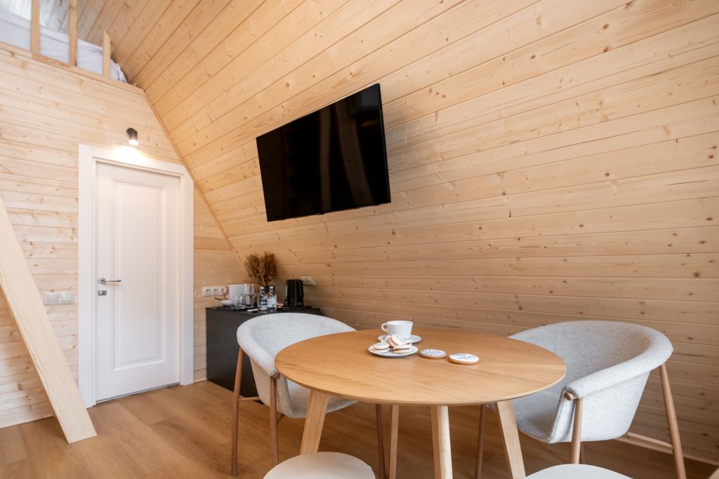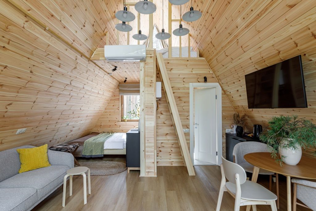 Домик-крыша оборудован всем необходимым для комфортного проживания до 4 человек.