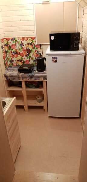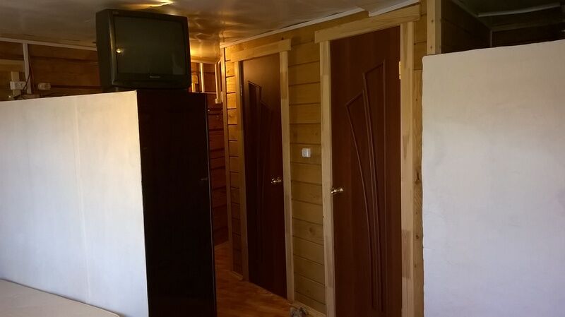Домик 45кв.м. душ, туалет, кухня, двуспальная кровать и односпальные кровати. 2 комнаты вместимостью до 4 человек.