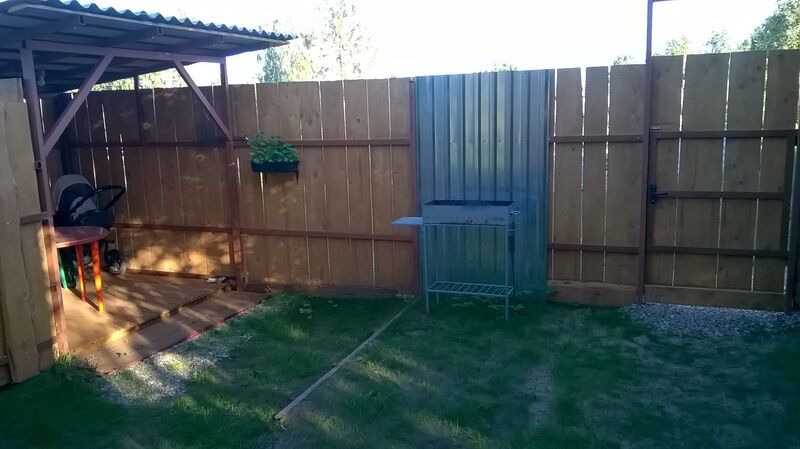 Дом находится на возвышенности, что на порядок уменьшает количество комаров и мошек, имеет свой участок один гектар с фруктовым садом и огородом, есть небольшая банька и беседка.