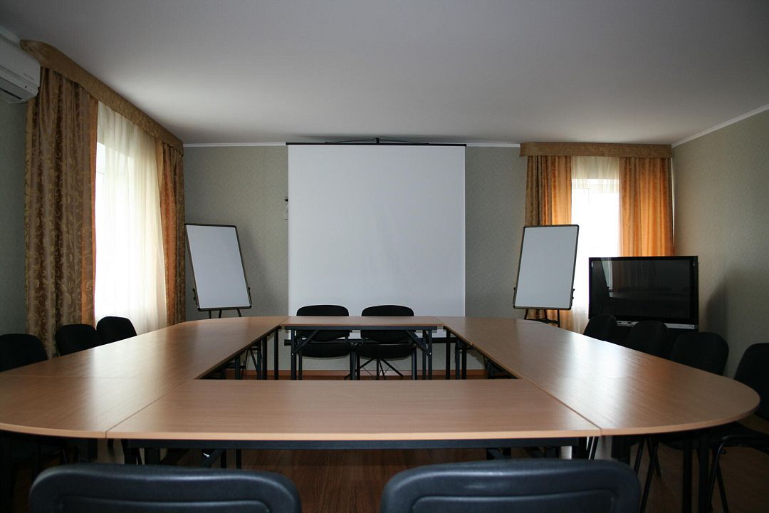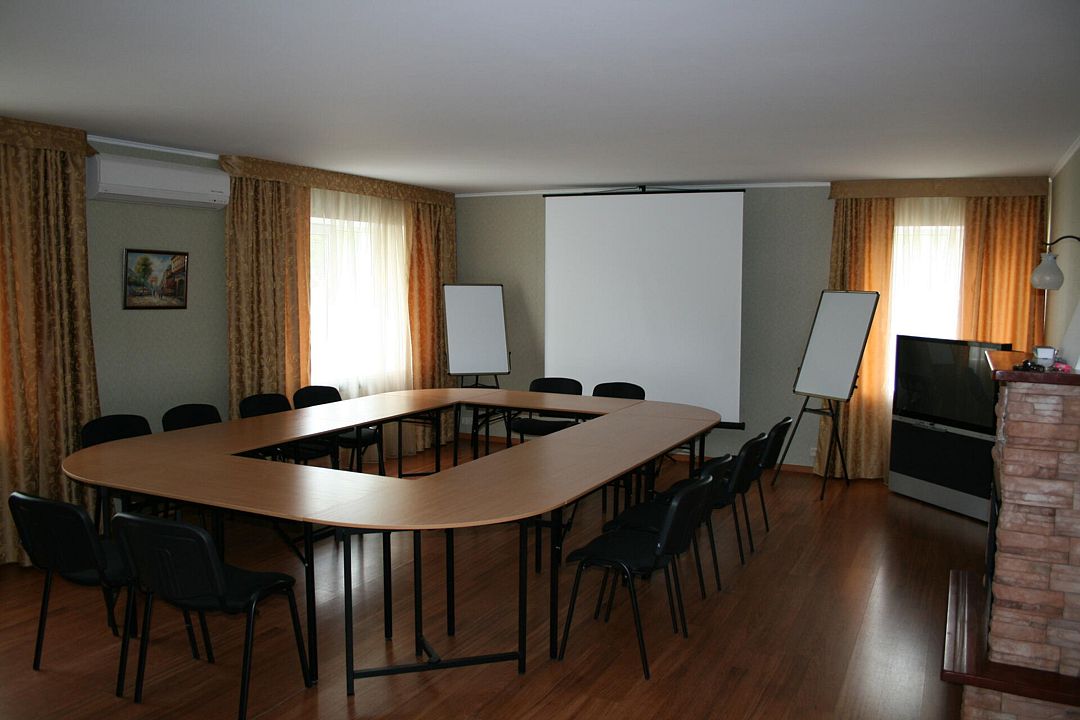 К Вашим услугам конференц-зал, оборудованный всем необходимым для проведения различных мероприятий. Вместимость зала – до 40 посадочных мест. При необходимости может быть организован кофе-брейк, питание для участников или банкет.