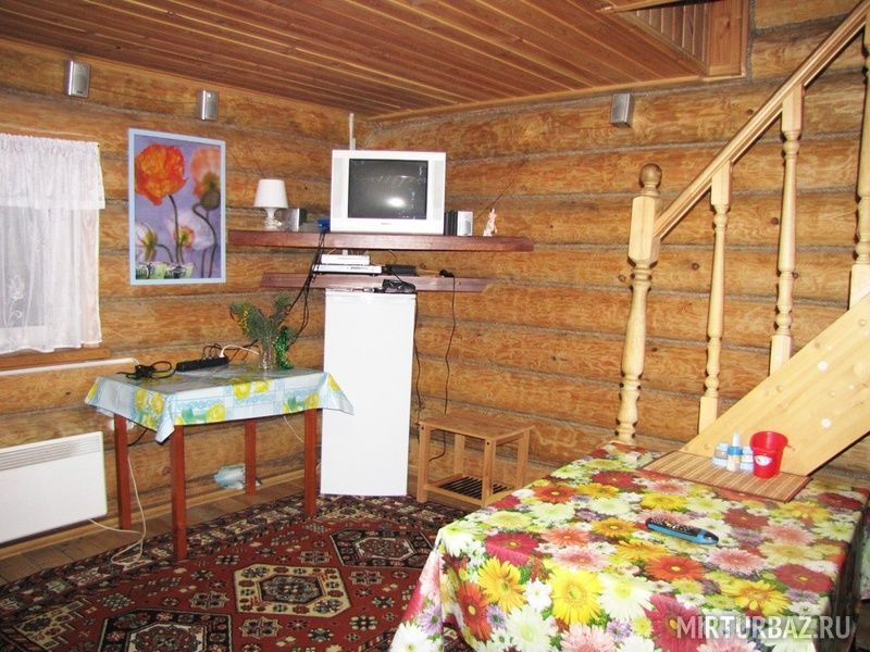 На первом этаже — гостиная комната с мягкой мебелью, большой телевизор со спутниковым приемом 190 каналов, музыкальный центр, видео. Оборудованная кухня с холодильником и морозильной камерой, СВЧ, духовкой и пр. Оборудованный санузел: туалет, умывальник с горячей водой.