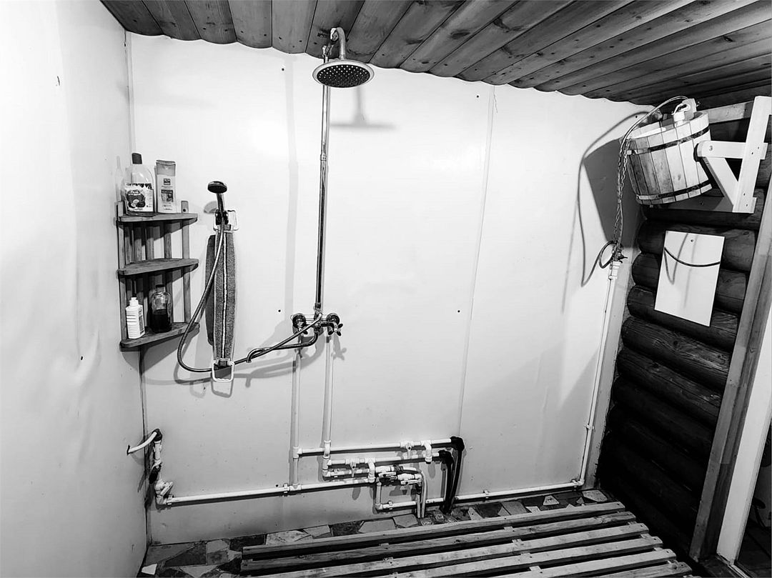 Русская баня с холодным обливным ведром и с контрастным душем.