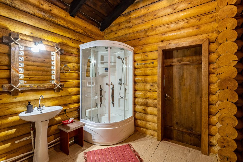 Из минусов: 1. Есть шикарная баня, но почему-то нет душа в бане, только таз для наполнения воды и ковш(хотя кран и место для этого имеются) в предбаннике.