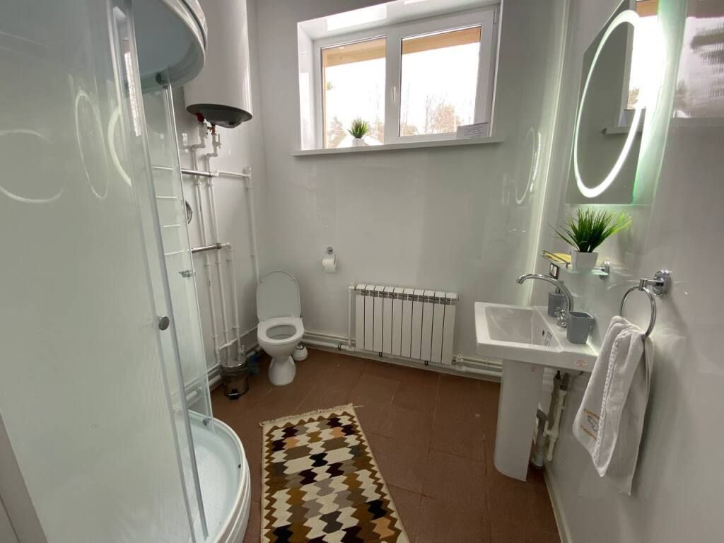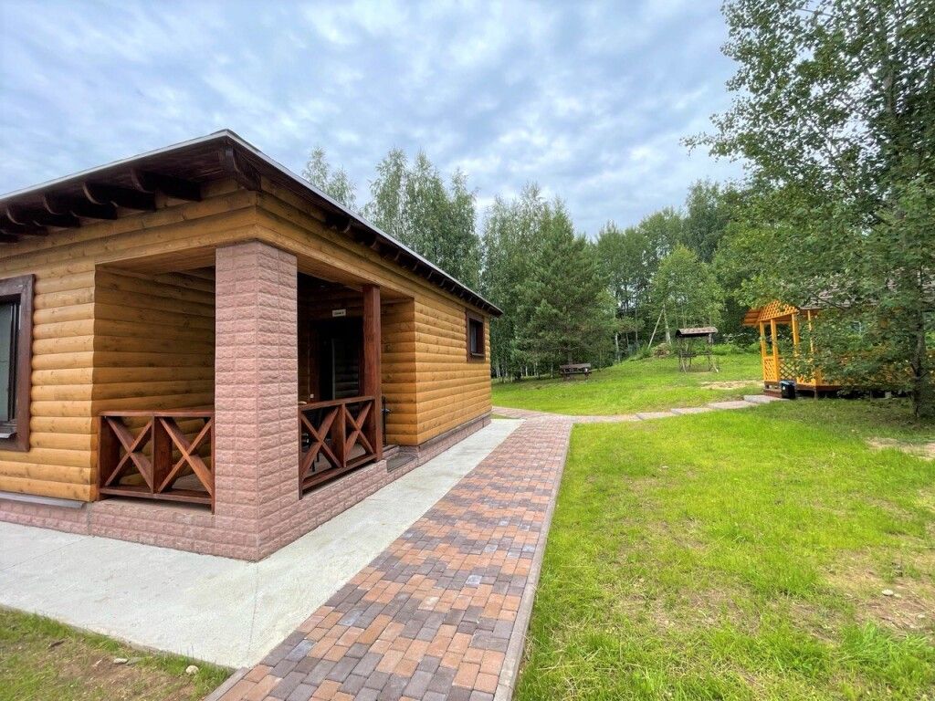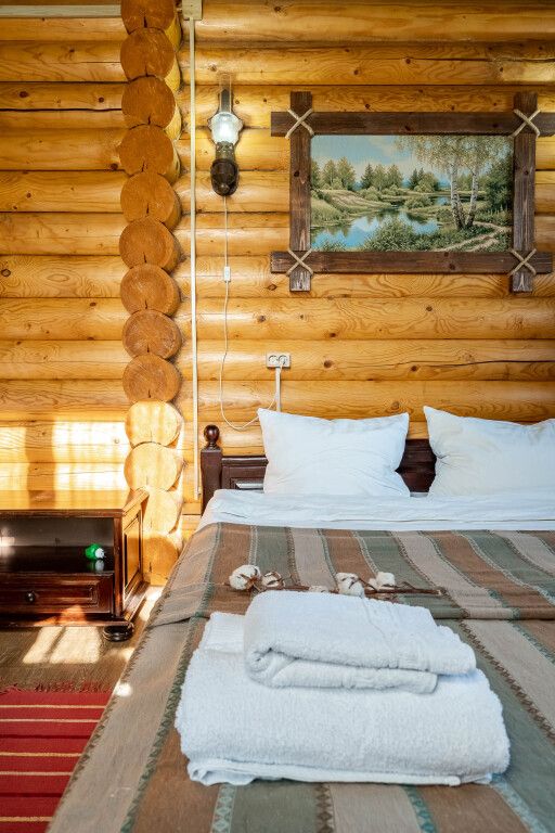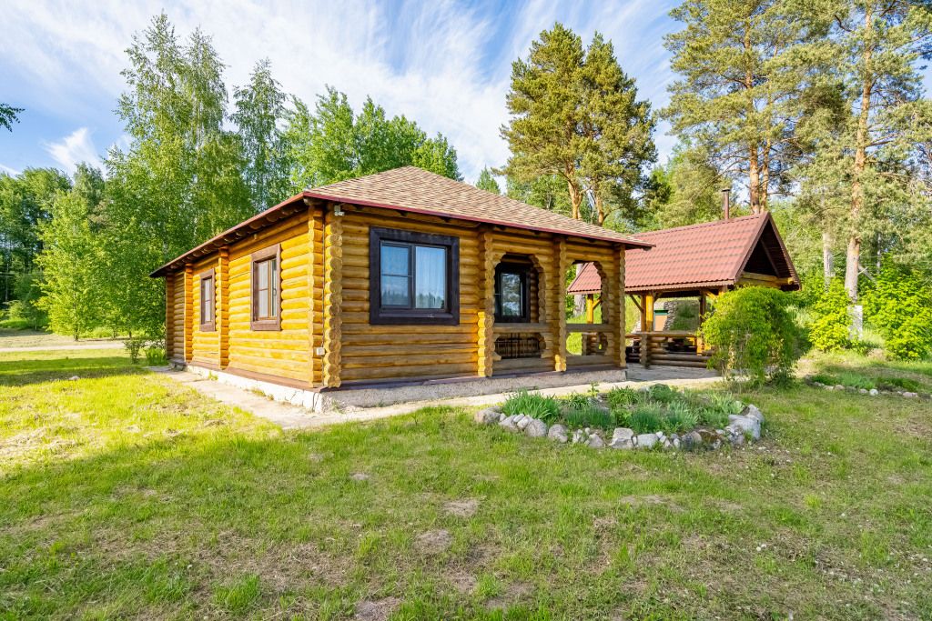 Гостевой дом из бруса со всеми удобствами, состоящий из двух спален, гостиной, кухни, сан узлом. Оснащен мебелью из массива дерева, ЖКТ телевизором 20 каналов, душевой кабиной, современной сантехникой и мебелью из массива дерева. В каждой спальне двуспальная кровать. В гостиной диван кровать с обеденным столом. Кухня оснащена холодильником, микроволновой печью, посудой. Горячая и холодная вода подается круглосуточно. У дома имеется веранда в видом на озеро, установлена беседка с мангалам.