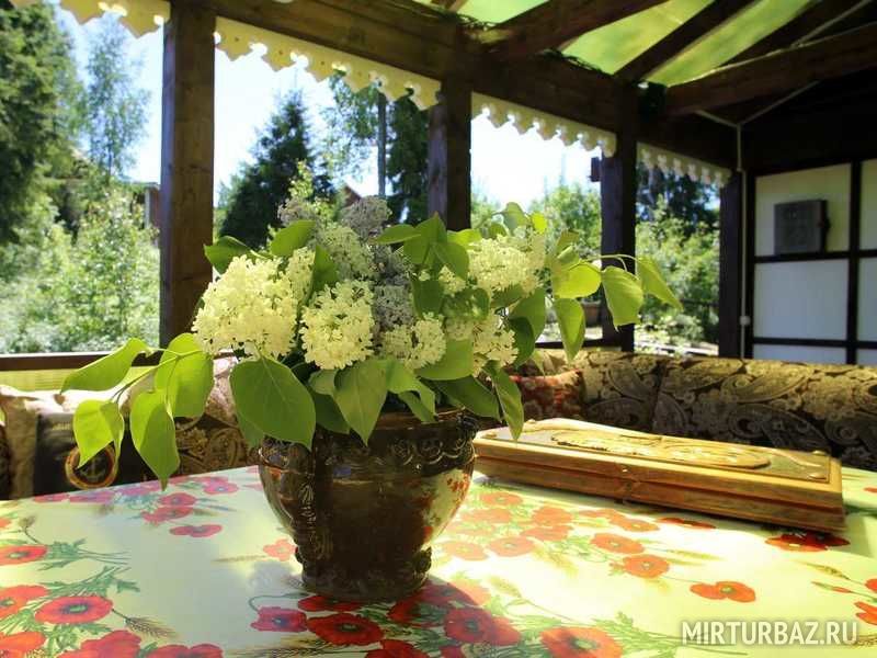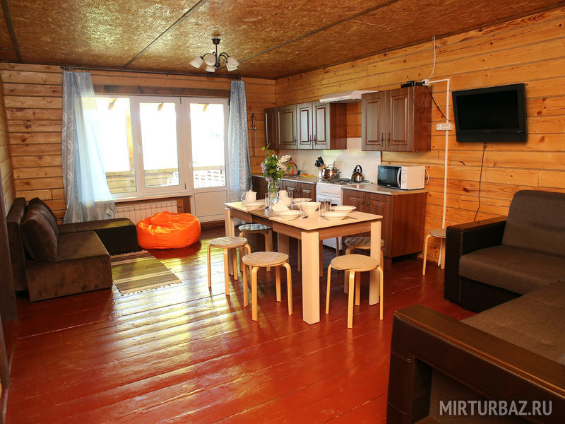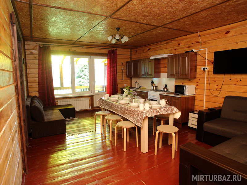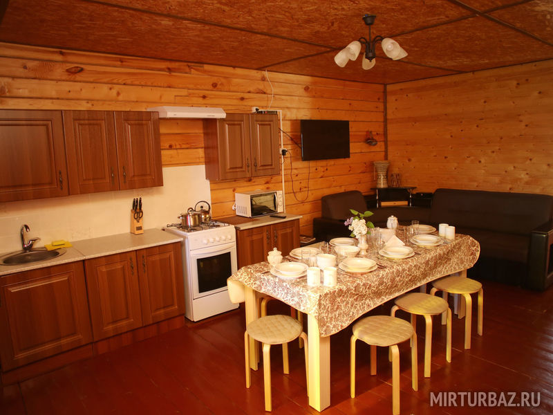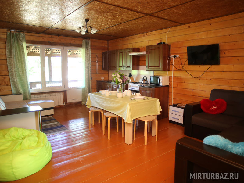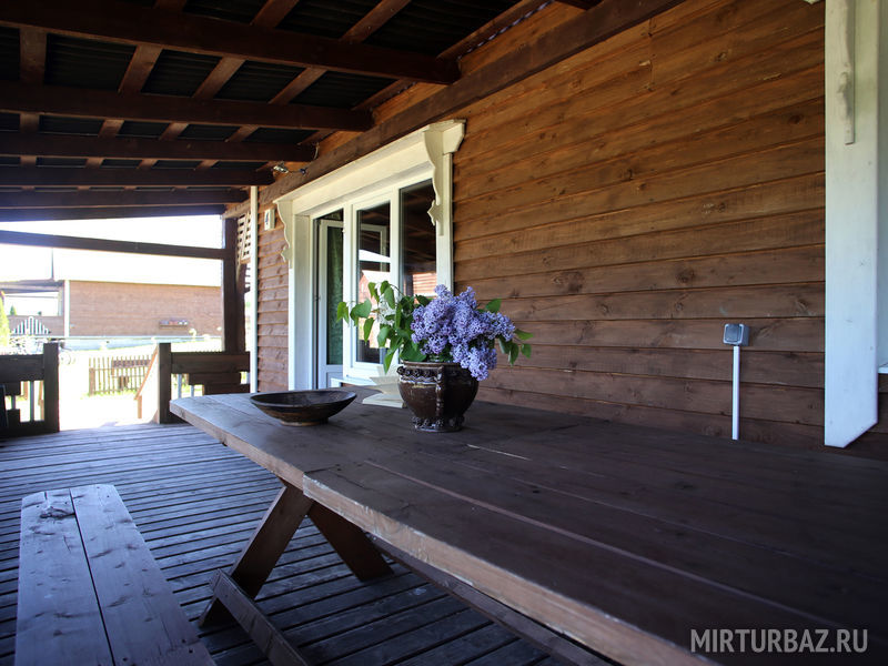 В доме большая терраса, большой деревянный стол, лавки, летняя комната, центральное отопление, мангальная зона, большая спальня, TV, WI-FI, кухня, ванная комната, полы с подогревом.