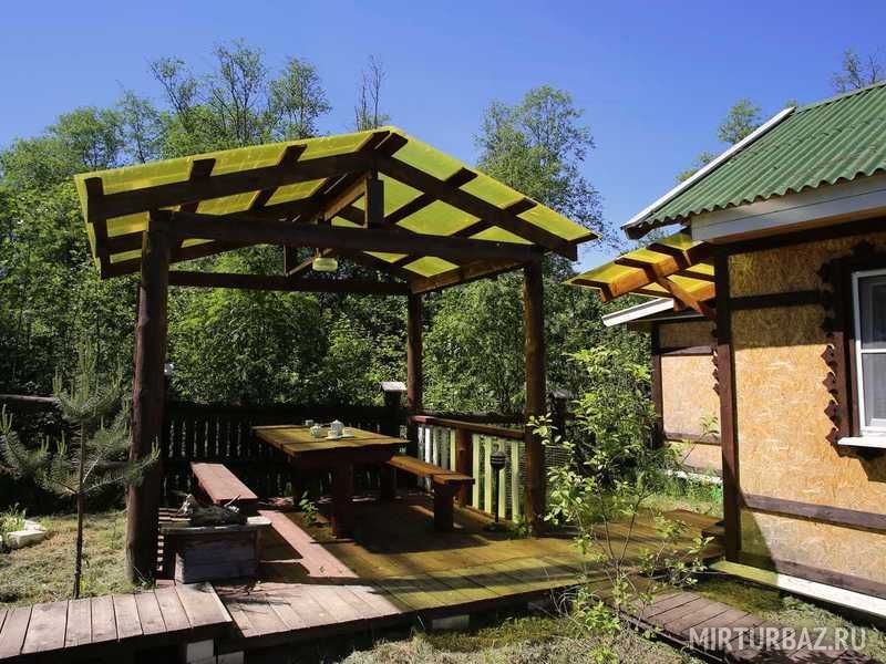 По территории комплекса рассредоточено несколько крытых беседок различной вместимости, которые идеально подходят для посиделок в тесной дружеской компании. В беседках имеются столы, лавочки, мангалы.