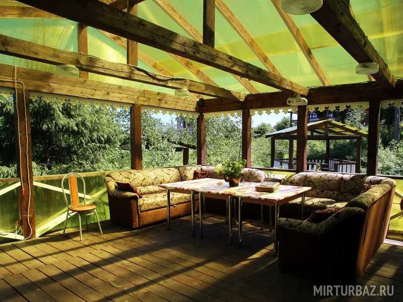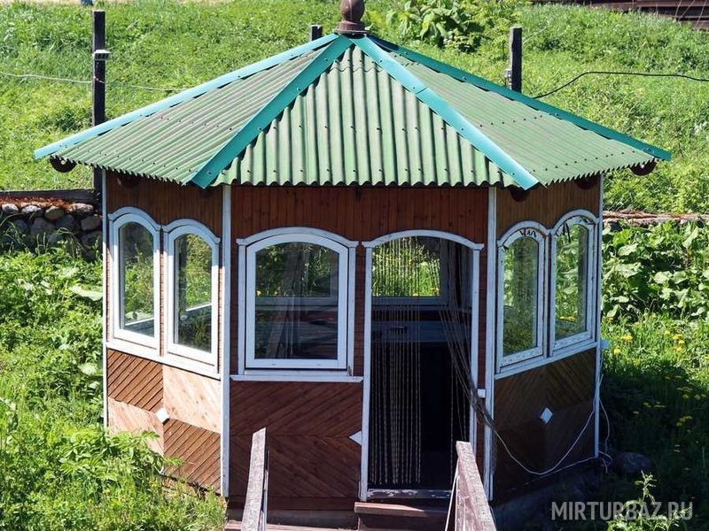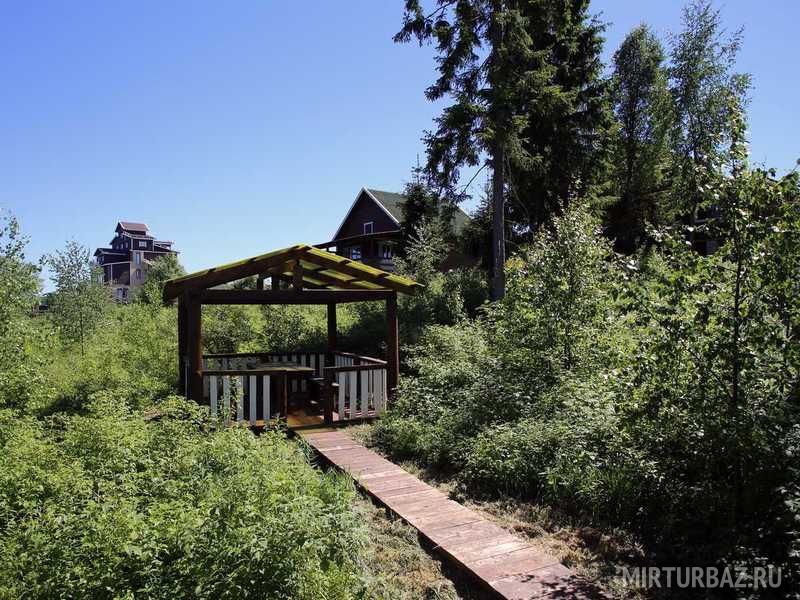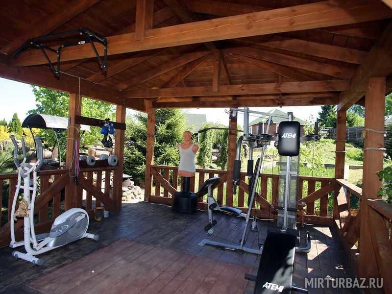 Одна из беседок оборудована под небольшой спортивный зал в разнообразными тренажерами. Тем, кто следит за своей формой, должно понравится.