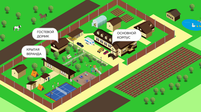 В отеле предоставляется комфортабельное размещение и возможность попробовать домашние продукты собственной эко-фермы. Кроме того, имеется множество разнообразных развлечений как для взрослых, так и для детей.