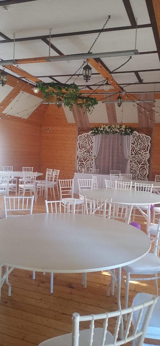 По запросу выдается посуда и сервируются столы за отдельную плату. Также здесь помогут с организацией питания и украшения зала.