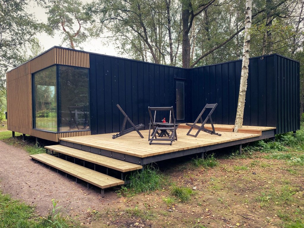 Два домика на 3-4 гостей с большой общей террасой (45 м²) и панорамным видом на поле.