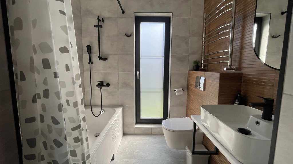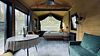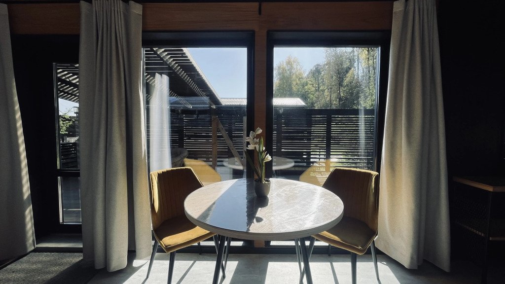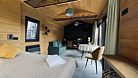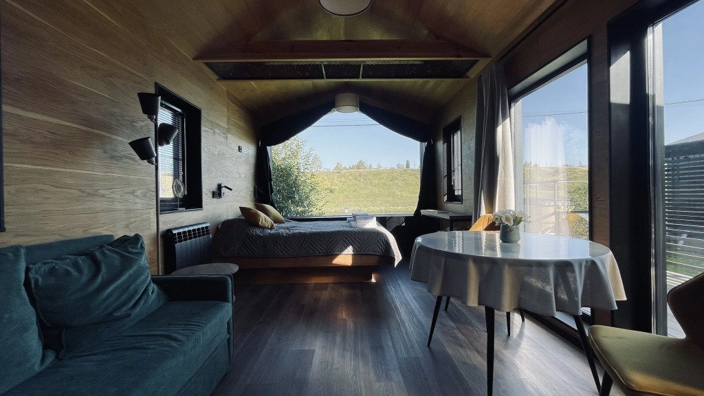 Барнхаус с большими панорамными окнами, собственной террасой и уютным интерьером. Внутри — просторная студия с кроватью, диваном, рабочей зоной и мини-кухней. Ванная комната оборудована как в отеле высокого уровня, а терраса с креслами идеально подходит для вечеров на свежем воздухе.