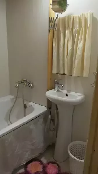 Санузел совмещенный с ванной, раковиной, горячая и холодная вода, бойлер.