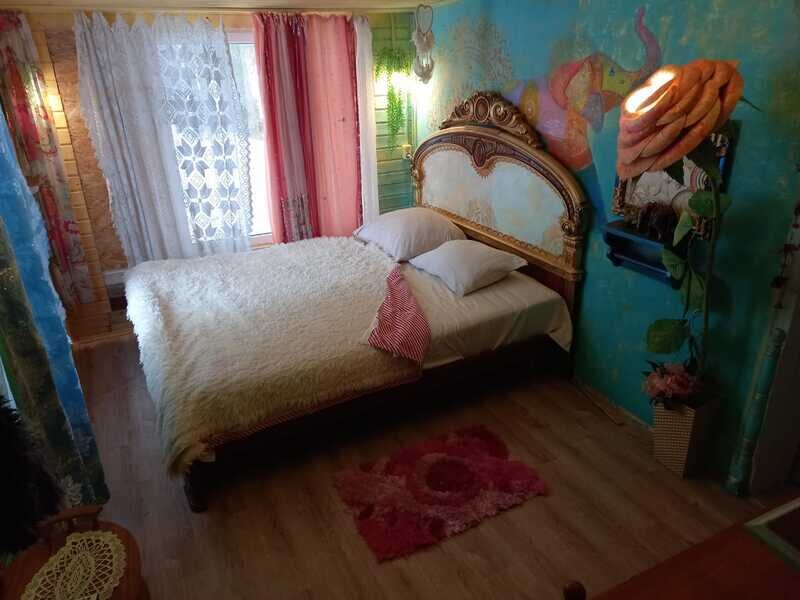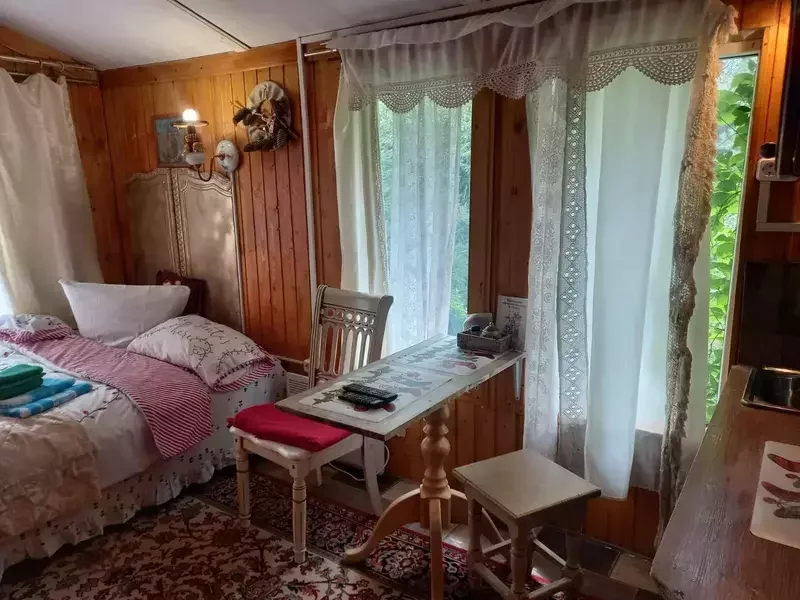 Апартаменты в коттедже имеют отдельный вход, гостиную, баню и спальню с двуспальной кроватью