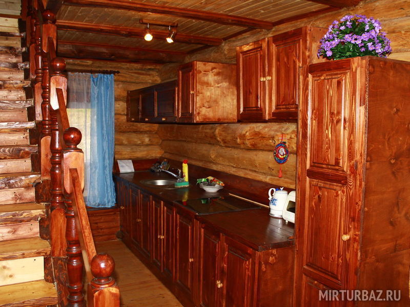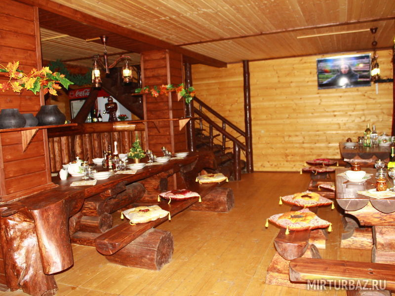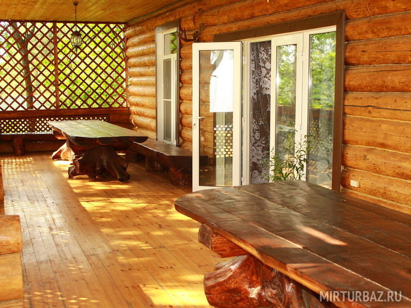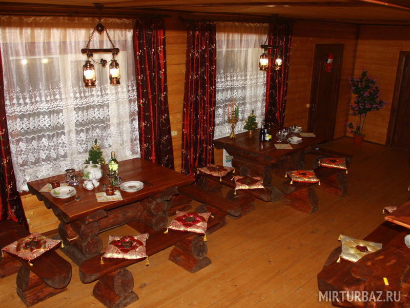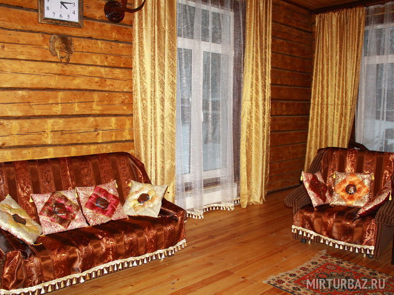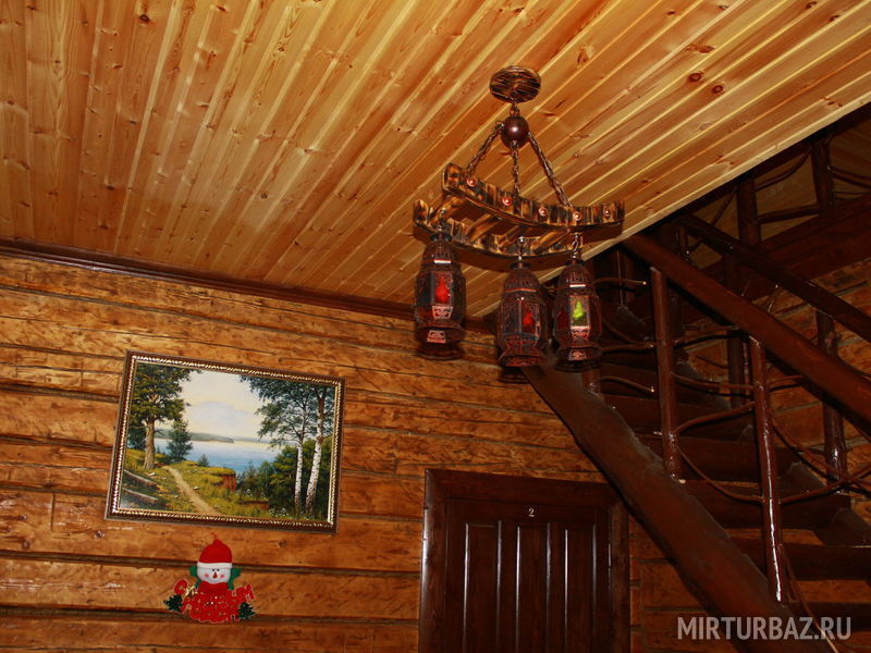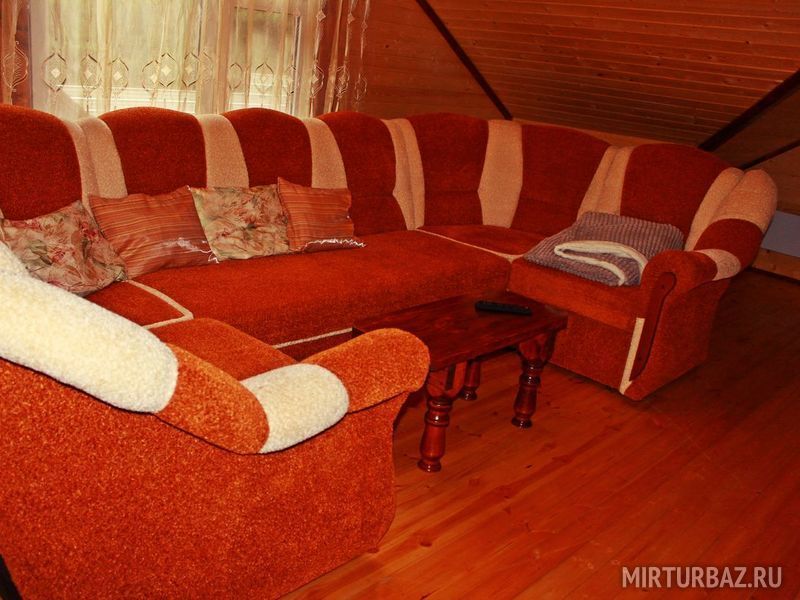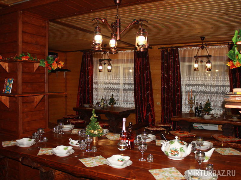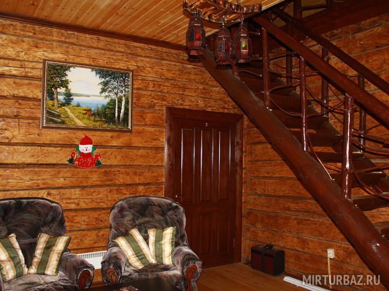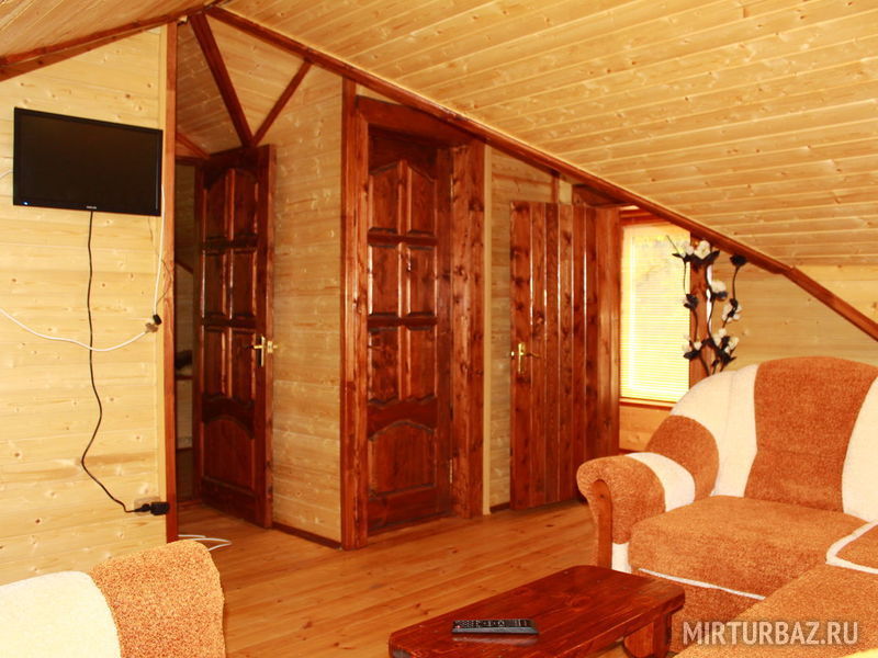 Большой деревянный трехэтажный коттедж гостиничного типа с сауной, русской печкой-лежанкой, ресторанной зоной, баром, бильярдом, аэрохоккеем, способный разместить одновременно до 17 человек.