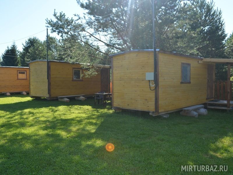 Домик с набором всего необходимого для полноценного отдыха. Оборудованные душевые и туалеты. В отдельной кухне можно приготовить и разогреть еду, воспользоваться посудой, холодильником и микроволновкой.