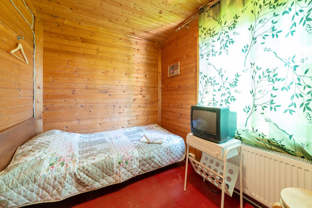 В данной категории есть 2 варианта домов :одноэтажный (дом № 7б,в, дом №7г,д) в доме 2 изолированные спальни, мини-кухня, санузел и двухэтажный (дом №5) ,в доме на 1 этаже кухня и санузел, на втором этаже 2 смежные спальни.