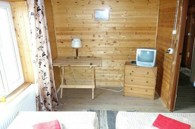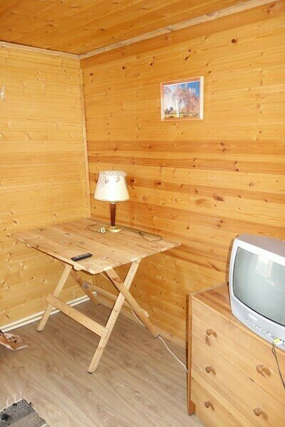 - 1 спальня с двумя кроватями, оборудованная мини кухня с набором посуды, холодильник, газовая плитка, стол и стулья, телевизор.